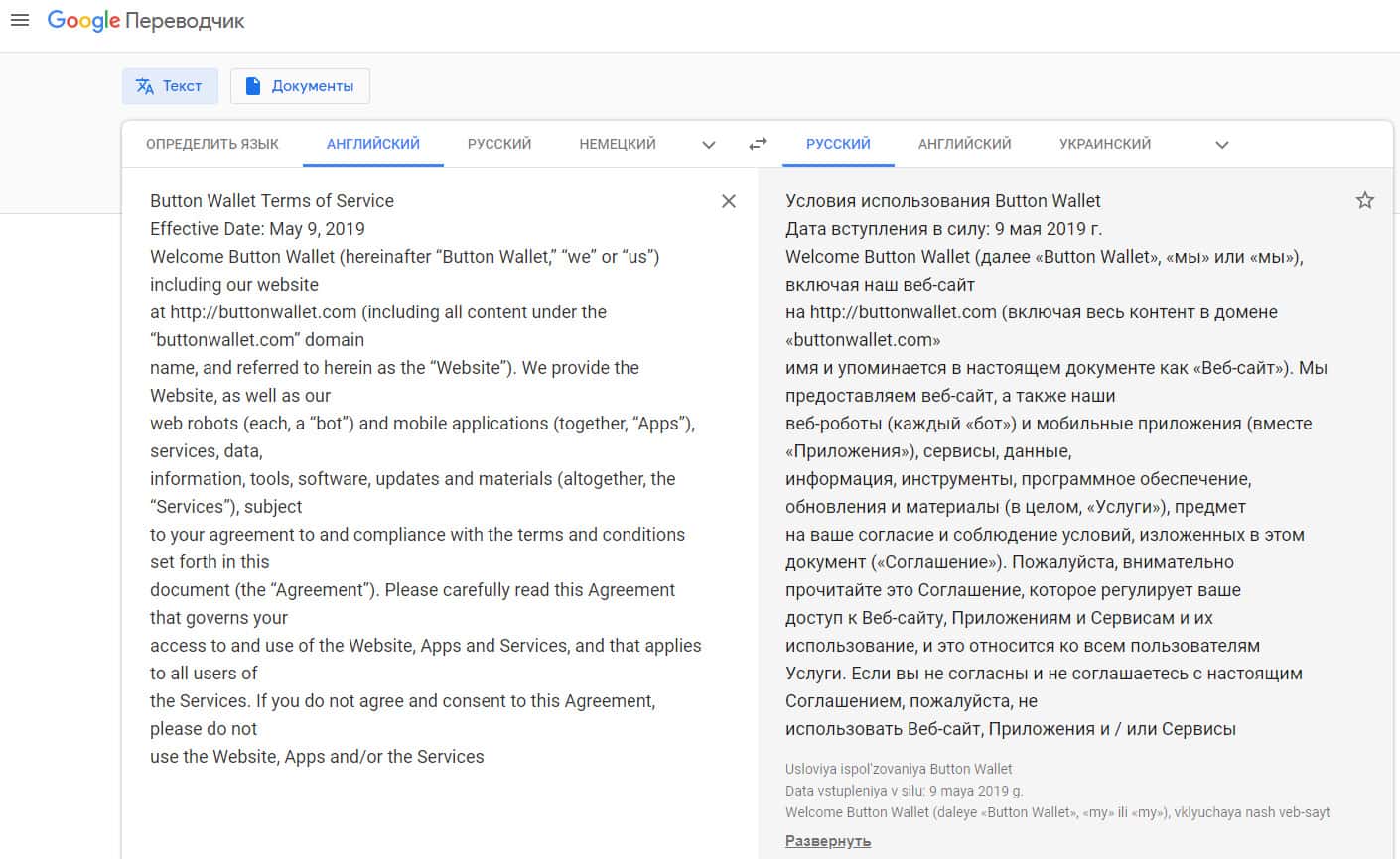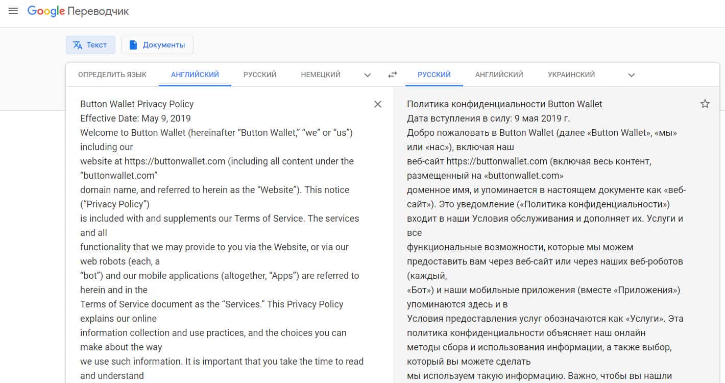 - Условия политики конфиденциальности проходимцев ButtonWallet