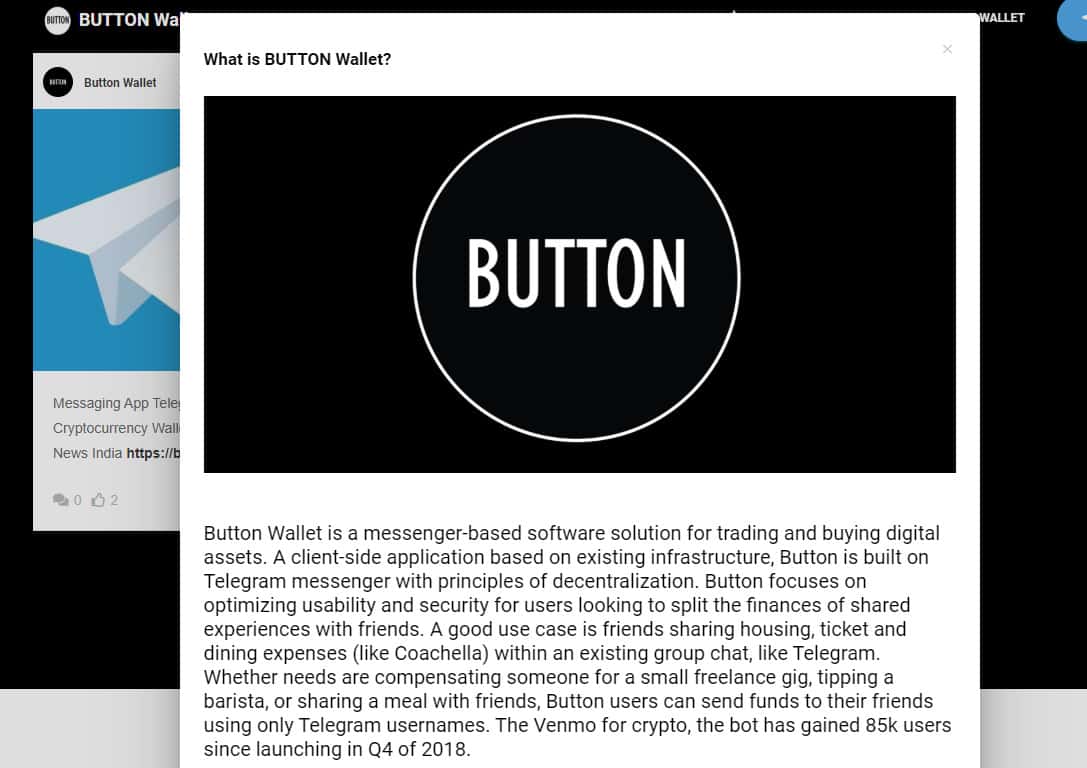 Начинается веб-сайт у лохотрона ButtonWallet с довольно типичной шапки сайта, в которой у лохотрона Баттон Валлет имеется краткое описание их конторы, под предлогом которого мошенники ButtonWallet заманивают пользователей для дальнейшего их развода. На изображении, расположенном ниже, вы можете наглядно увидеть начало сайта шулеров.
