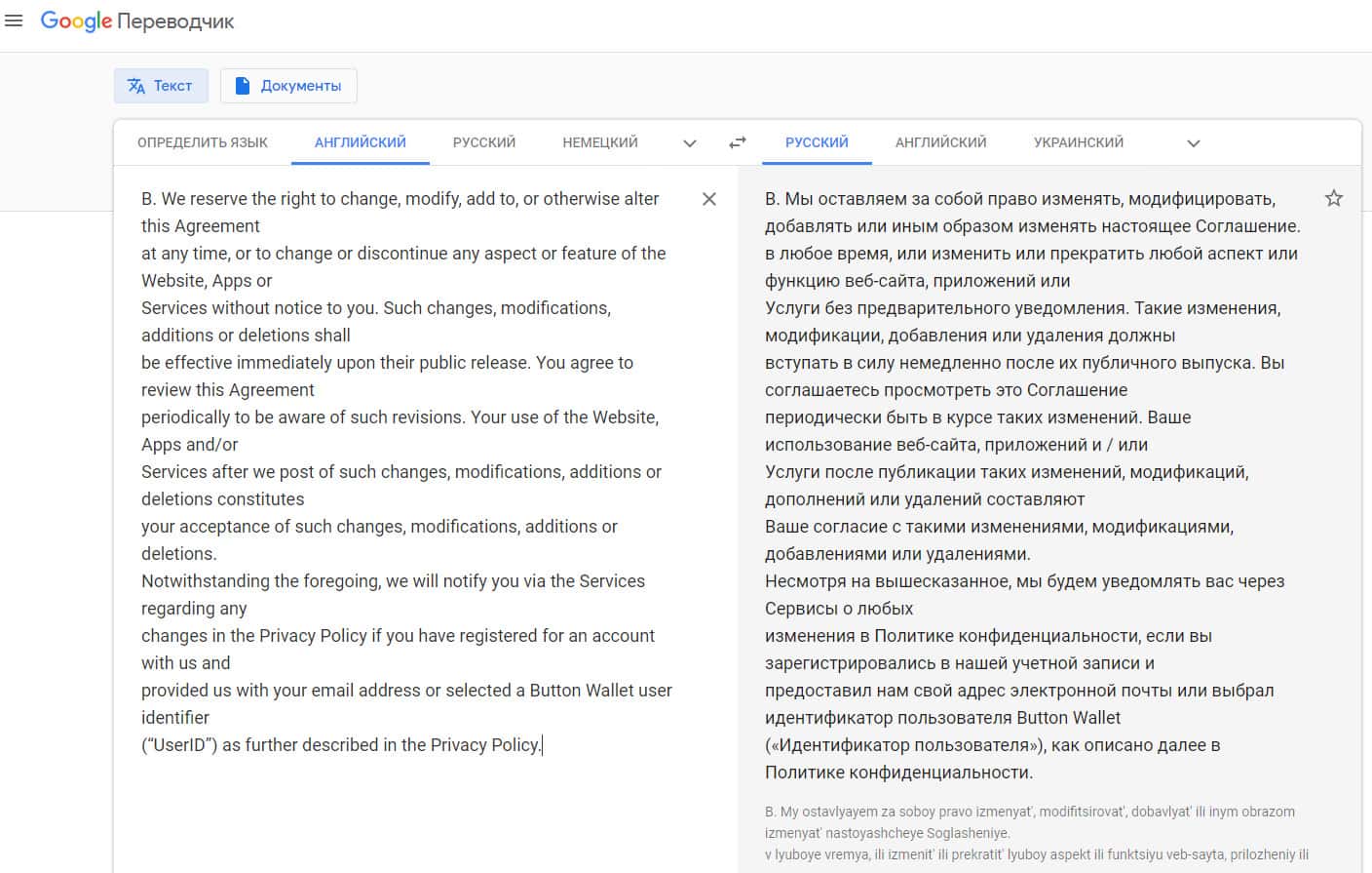 Далее проходимцы ButtonWallet говорят о том, что наивные пользователи соглашаются с данной политикой конфиденциальности, а так же тем, что шулера Баттон Валлет могут в любой момент по своему личному и персональному усмотрению изменить условия данной политики конфиденциальности без предварительного уведомления наивных пользователей.