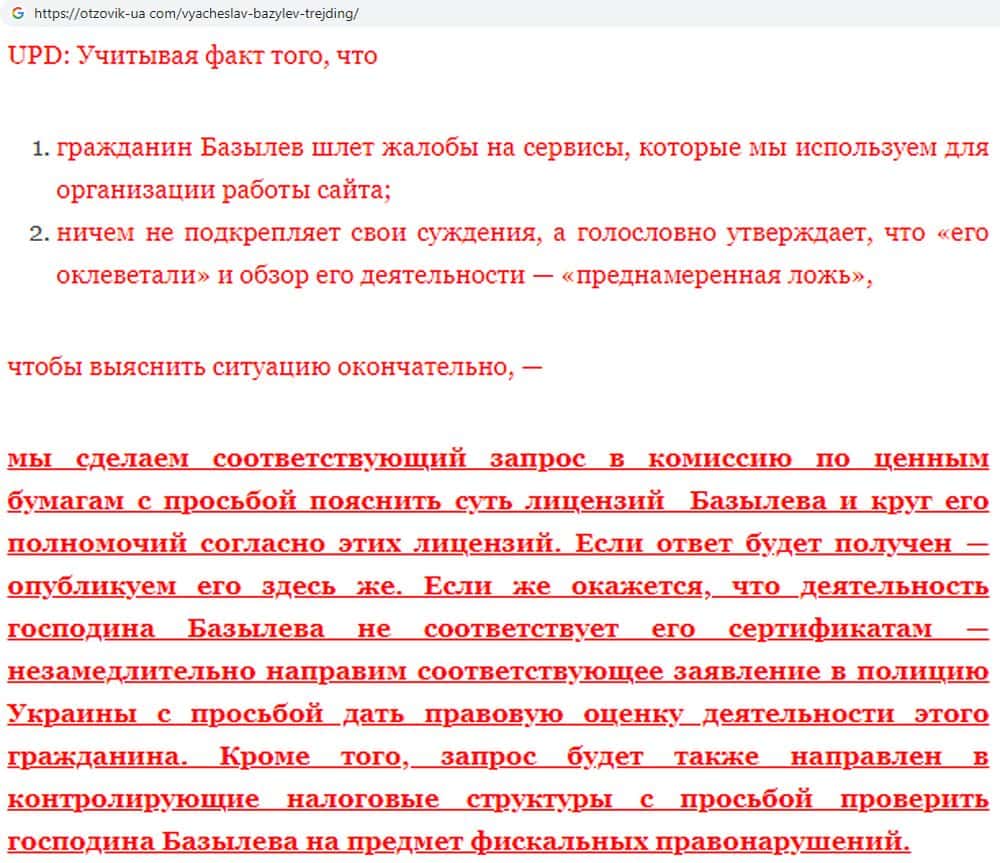 - Как аферисты Bazylev Org расправляются с правдивыми отзывами?