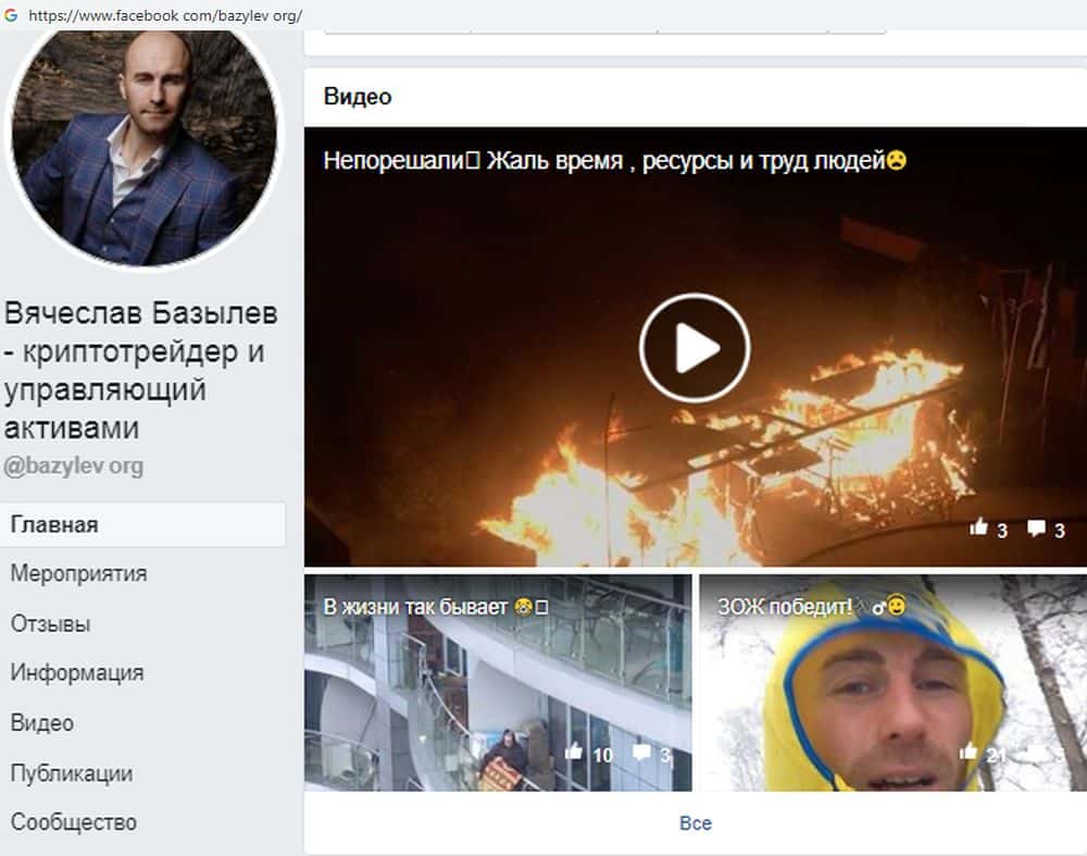 Аккаунт на портале vk com они вообще забросили. Последняя публикация жуликов Bazylev Org здесь - тухлое приложение для онлайн-трейдинга за 40 долларов, которое, видимо, не пошло. Выложили его год назад, и с тех пор группа травой поросла. На Фейсбук жулики посты изредка выкладывают, но в основном какую-то дичь и смешные видосики.