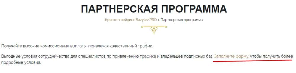 Естественно, на сайте куча фиктивные отзывов... а может и не фиктивных. Стоп, откуда же столько положительных отзывов о мошенниках Bazylev Org? Да все просто, дела в партнерской программе: приведи 10 лохов, и получишь процент от той суммы, на которую их раскрутишь. Условия партнерки хапуги Bazylev Org раскрывают только после заполнения заявки.