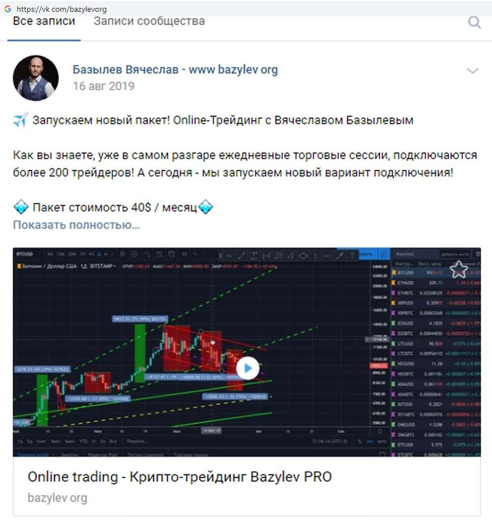 Как и все шарлатанские организации подобного толка, Bazylev Org активно шуруют в социальных сетях. Это позволяет им увеличить популярность своего хайп-проекта и помогает искать жертв среди людей, которые предпочитает именно так обмениваться информацией. Правда, к разработке этого канала плуты Bazylev Org подошли спустя рукава.