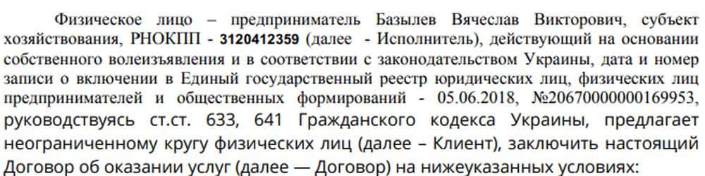 Клиентское соглашение в исполнение аферистов Bazylev Org