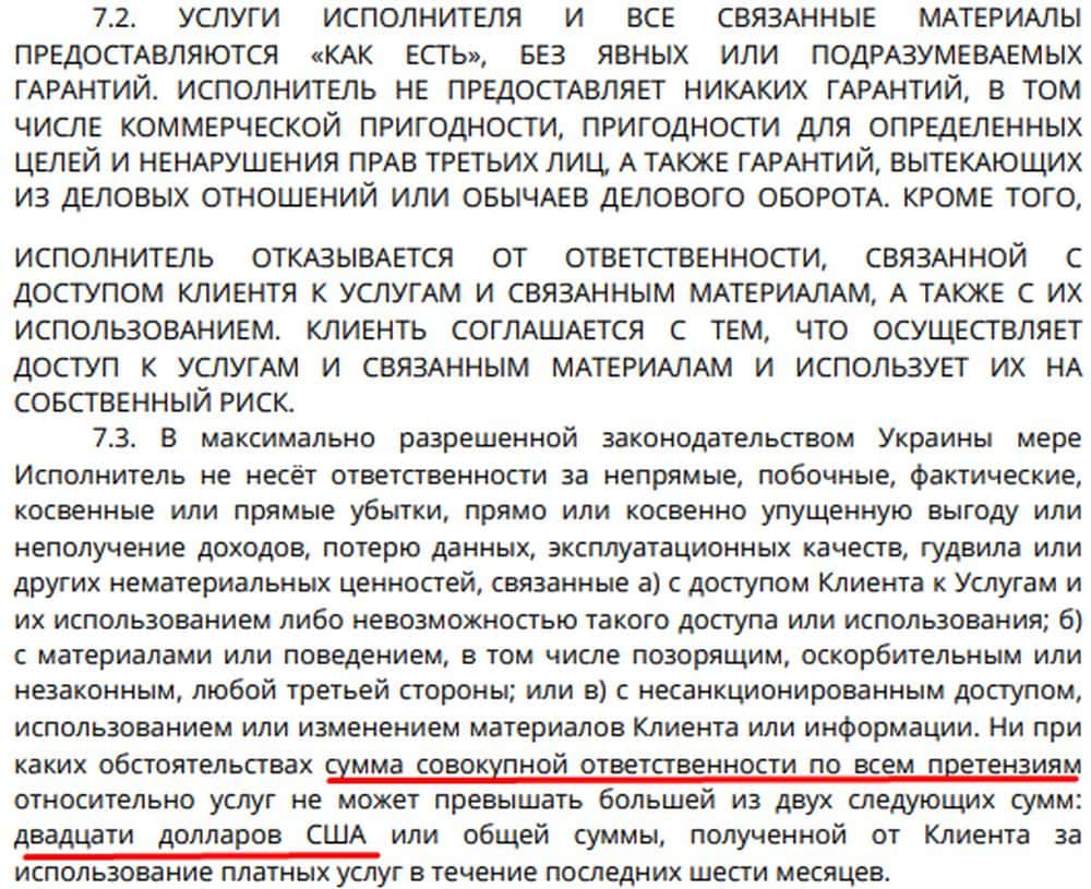 Дальше в соглашении, если его так можно назвать, жулики Bazylev Org отказываются от любой ответственности и сообщают, что если дезинформация на сайте привела к финансовым потерям, то они не причем - грош цена их аналитическим обзорам, короче. А сумма ответственности по претензиям не может превышать 20 долларов!!!