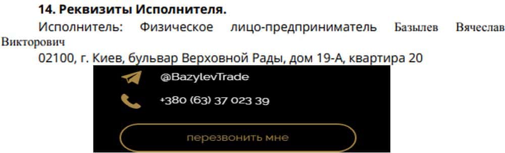 Этот документ должен убедить новичков в том, что их активы будут в безопасности в руках разводил Базылев Орг. На самом деле он не дает никаких гарантий, это просто сертификат, который может проплатить каждый. А настоящих документов у жуликов Bazylev Org нет - даже данные ФЛП, предоставленные на сайте, являются липой.