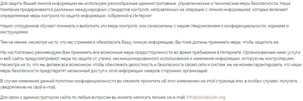 - Как относятся хапуги Bazylev Org к политике конфиденциальности