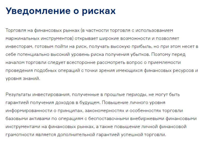 Вместо условий сотрудничества у мошенников BBTEAM PRO имеются предупреждения о рисках
