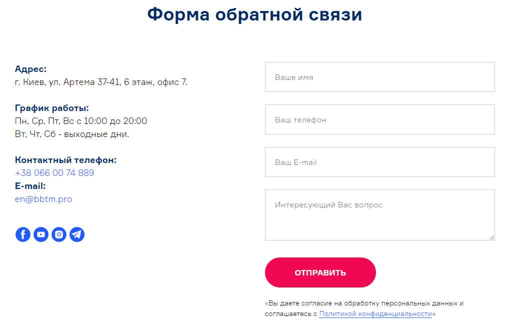 - адрес - г. Киев, ул. Артема 37-41, 6 этаж, офис 7;