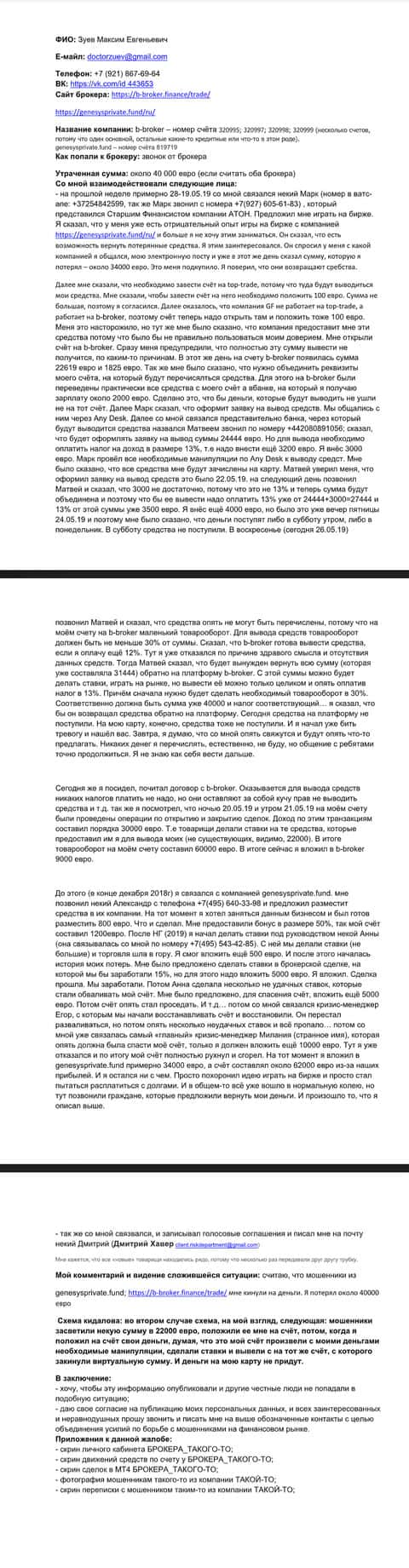 Жалоба на разных аферистов, включая лохотрон ББрокер - клиент утратил 40 000 евро