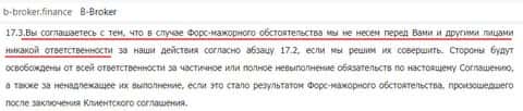 Ну и, куда без форс-мажоров, или же обстоятельств непреодолимой силы. При том что чёткого определения этого понятия нет, и мошенники B-Broker могут по собственному усмотрению снять с себя ответственность, сославшись на форс-мажор, которого по факту могло и не быть, но разбираться тут, смотря на мошенническую наружность данных жуликов, никто не будет.