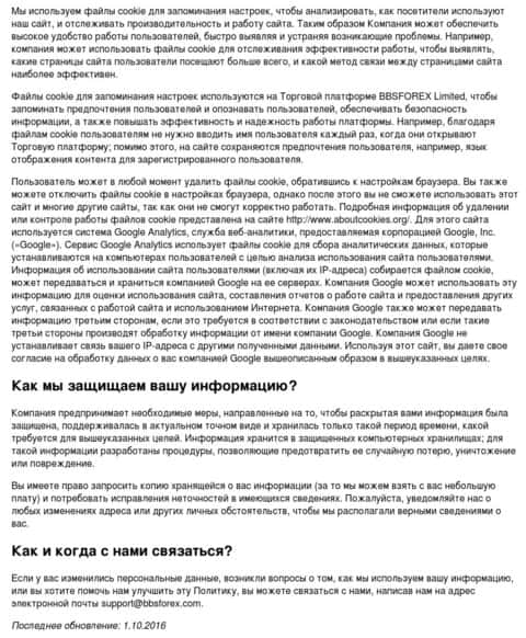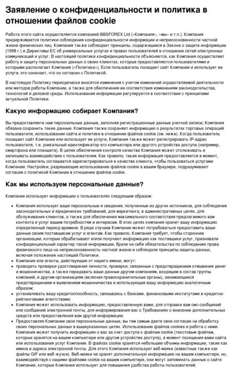 Политика конфиденциальности шарашкиной конторы BBSForex