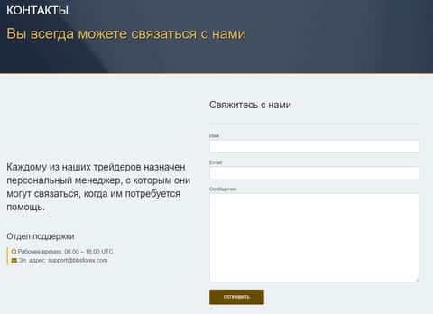 Перейдём к контактам шарашкиной конторы ББС Форекс. Как понимаете, все эти контакты не дают ни малейшего представления о том, кто является реальными управленцами данной шарашки. Мало этого, мошенники BBSForex не указали никакого адреса и номера телефона, только адрес почты: