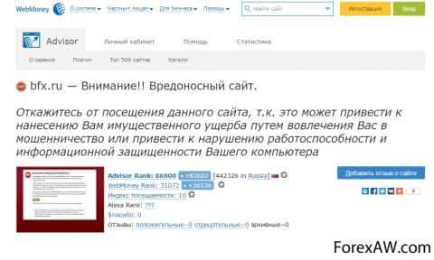 - WebMoney Advisor не рекомендует пользоваться bfx.ru