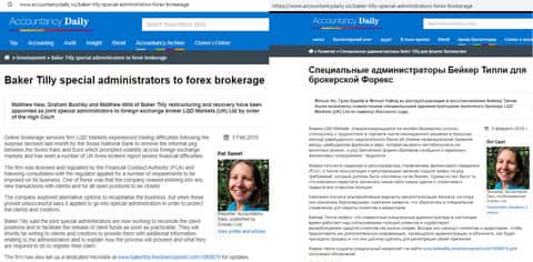 Статья-подтверждение, что контора Baker Tilly пособничает с форекс-лохотронами