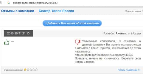 По словам одного интернет-пользователя, контора Бейкер Тилли раньше называлась как Грант Торнтон, и о них в интернете достаточно дурная слава. Если вы не хотите стать жертвой мошенничества этой шараги, то немедленно закрывайте их сайт и рвите какие-либо с ними контакты.