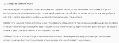 По поводу безопасности данных о клиентах, здесь очень спорный вопрос, так как жулики Бейкер Тилли указали, что они не передают их третьим лицам, но все же есть много исключений, когда они это сделают. В случае, если информация просочится к другим лицам, то здесь они уже нести ответственность не будут.