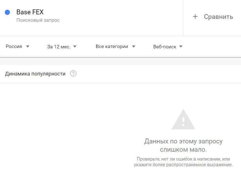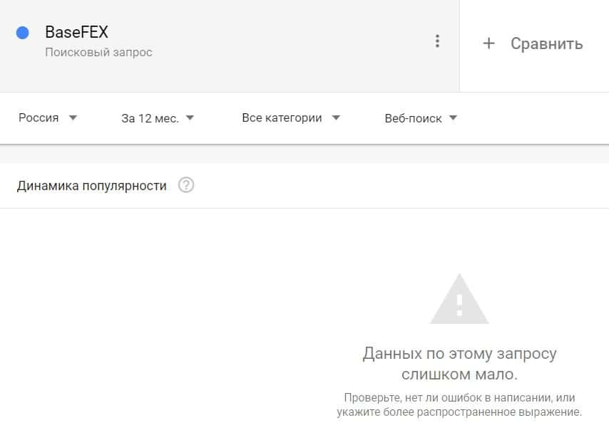 Посмотрим, насколько популярно название бренда "BaseFEX", написанное на английском языке. Данных по этому запросу нет, так как в Гугл не было большого количества запросов.