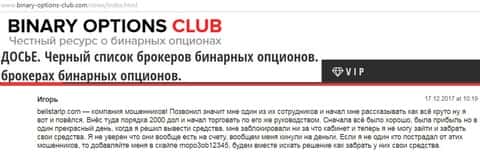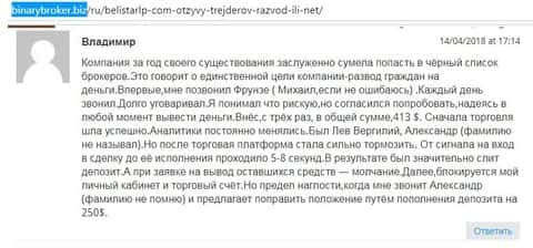 С шарлатанами Belistar столкнулся и автор следующего отзыва о данном forex-лохотроне. Коммент также найден на интернет-источнике о брокерах бинарных опционов binary-options-club com.