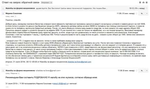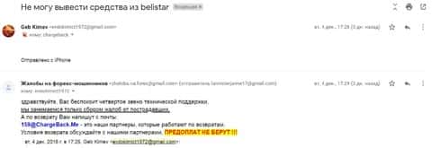 - Жалоба на контору аферистов Форекс Белистар