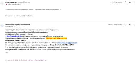 В нашу редакцию пришло очередное письмо от человека, который стал жертвой лохотрона форекс-кухни Белистар. Ней стала одна женщина, которая доверилась аферистам и передала деньги в управление. На этот раз ей пришлось написать подробности схемы кидалова в организацию ChargeBack.Me