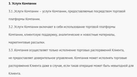 Ну а в третьем разделе аферисты Belistar вообще заявляют о том, что они не предоставляют доверительное управление и, соответственно, всю ответственность за счет возлагают на клиента. На изображении ниже вы можете увидеть данное условие шулеров Белистар.