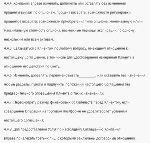 И заканчивается пользовательское соглашение жуликов Белистар на волне того, что аферисты Belistar могут в любой момент изменить данное пользовательское соглашение. На изображении ниже вы можете прочесть данный раздел пользовательского соглашения шулеров Белистар.