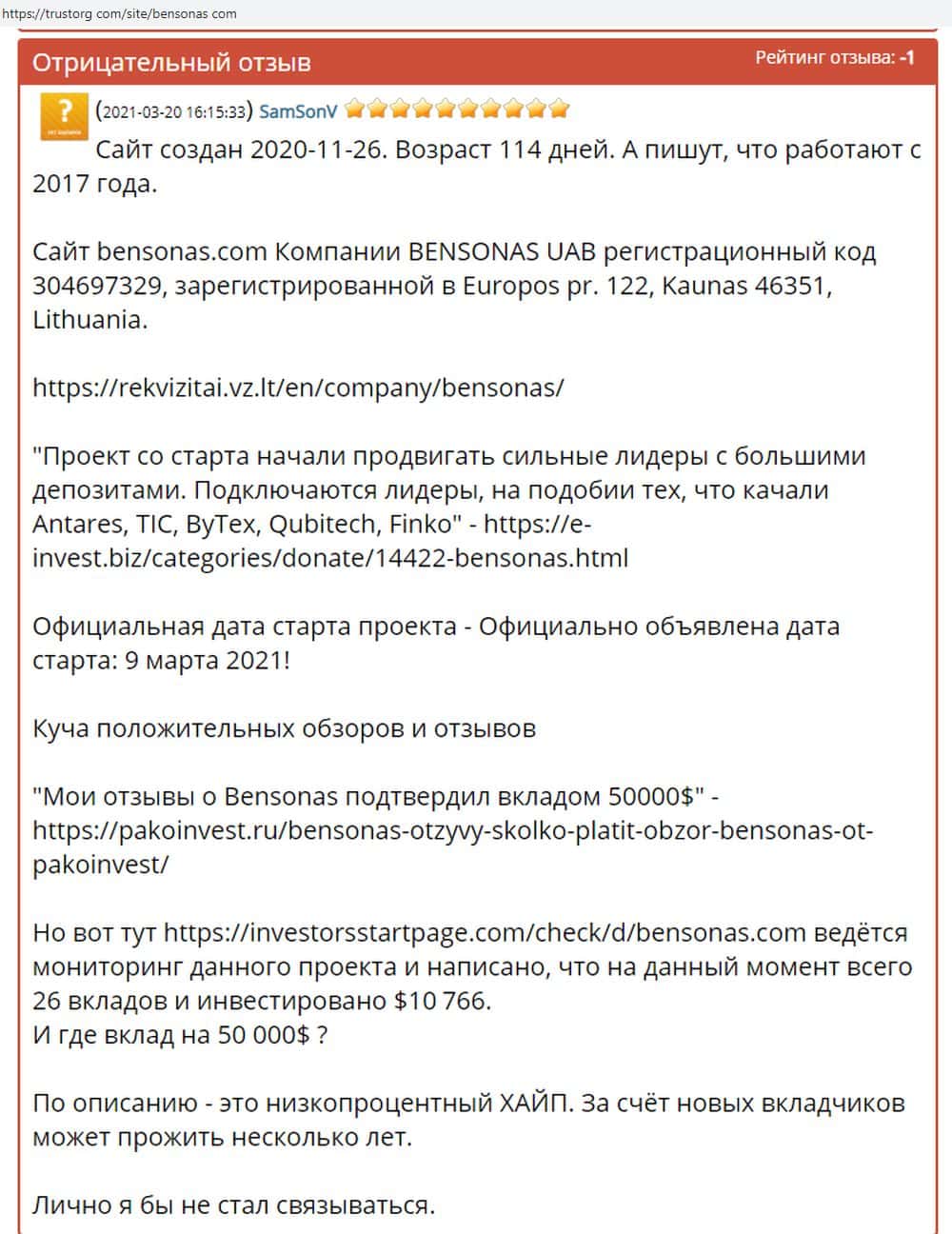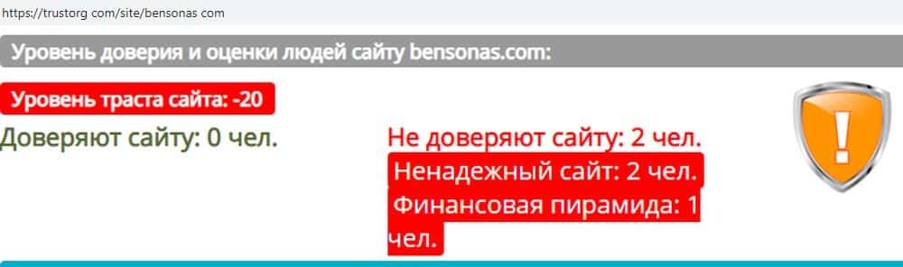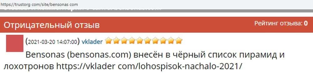 - Люди не доверяют сомнительному лохотрону Bensonas