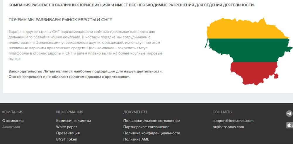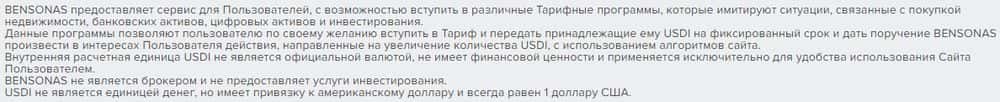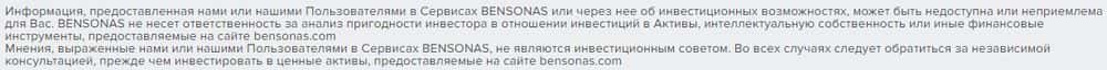 Разводилы Bensonas сразу предупреждают, что не стоит обращать внимания на всю ту информацию, которую они публикуют на сайте. Жулики даже не отвечают за ее адекватность.