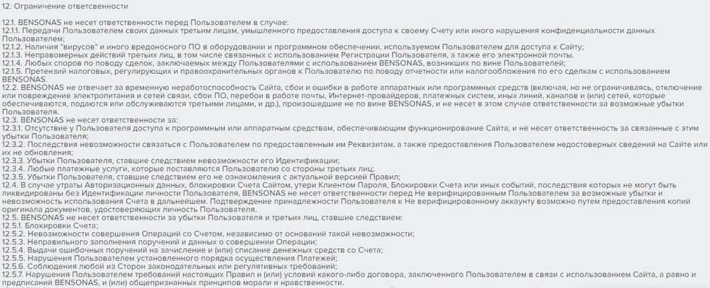 Доверять клиентскому соглашению мошенников Bensonas нельзя ни в коем случае - оно создано специально, чтобы обдирать людей, они могут его менять в любой момент как удобно.