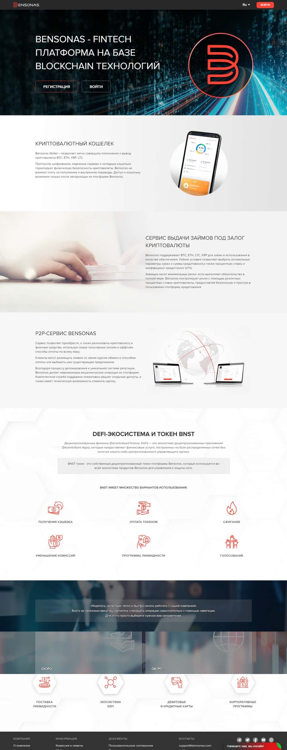 Разводилы Бенсонас не посчитали нужным указывать в футере, от имени какого юридического лица они работают. А это значит, что вся история их компании - это просто обман.