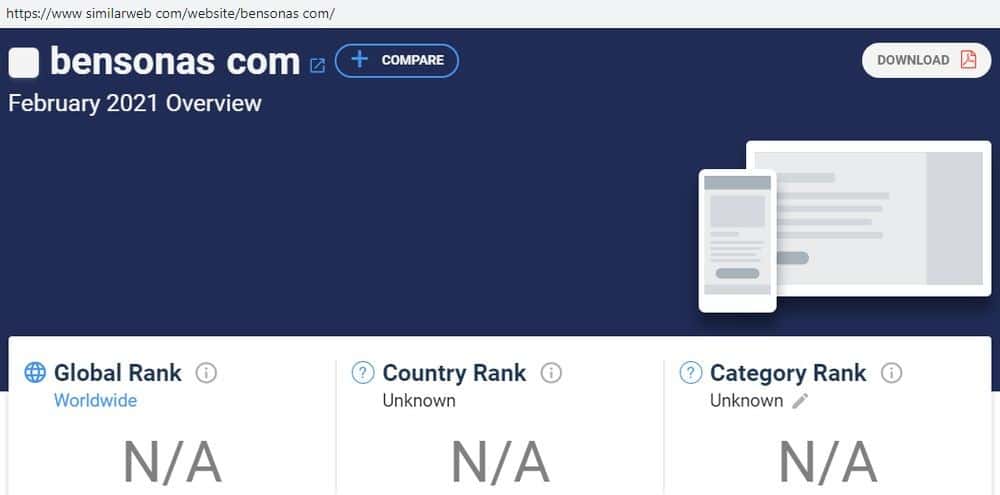 Как показывает веб-сервис симиларвеб ком, у жуликов Bensonas слишком мало входящего трафика, чтобы определить его источник. Не удивительно, люди обходят скам-проект стороной.