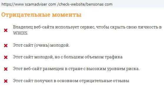 Почему лучше держаться от сайта разводил Бенсонас как можно дальше