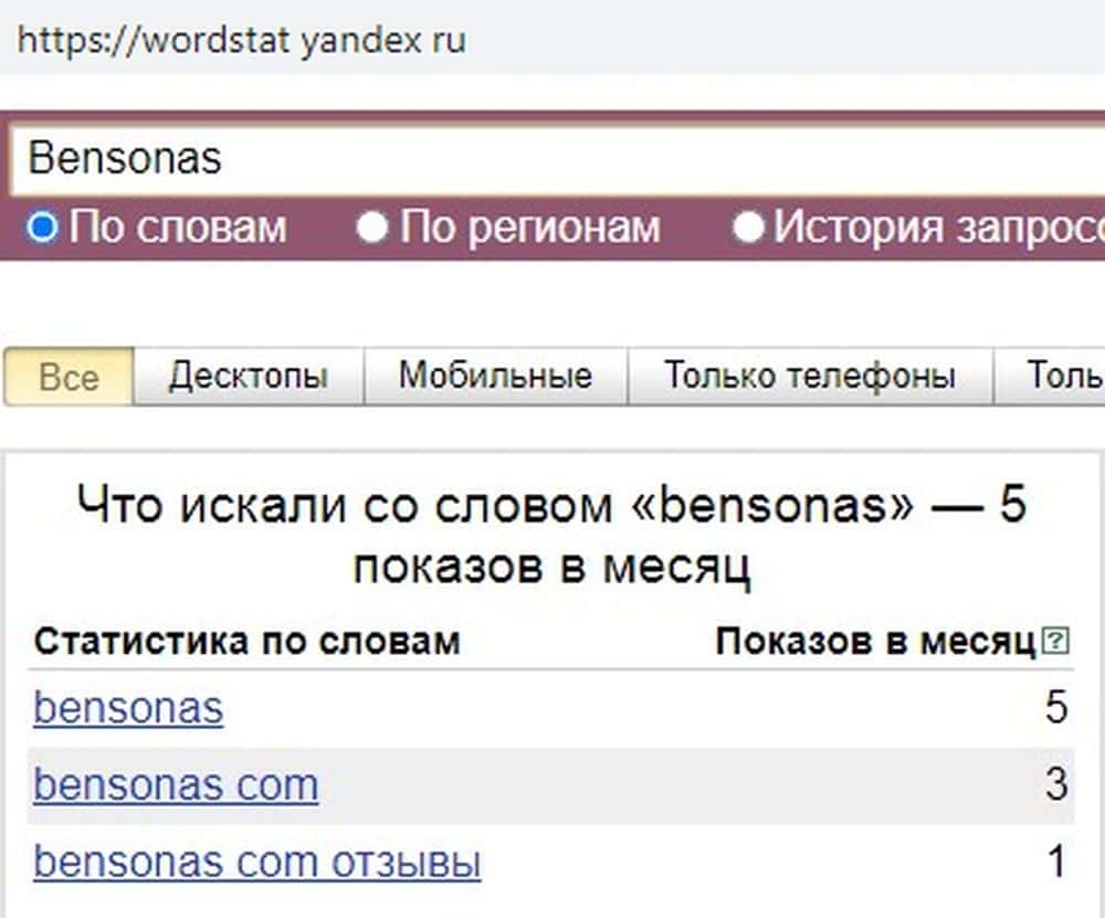- Насколько популярен скам-проект Бенсонас среди пользователей Яндекс?