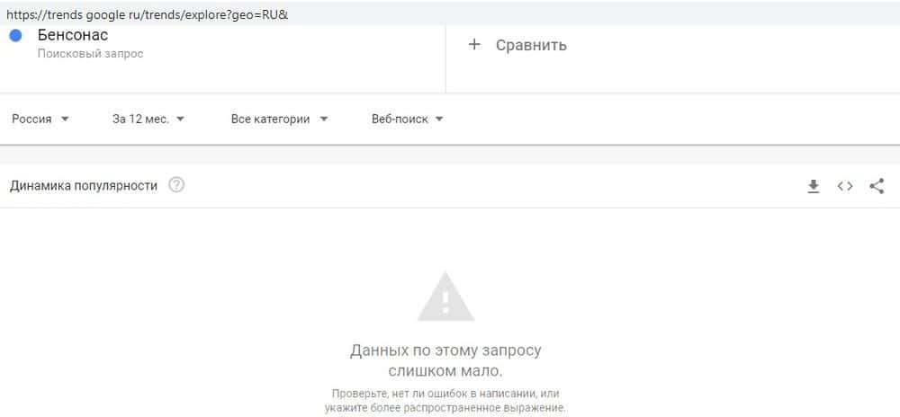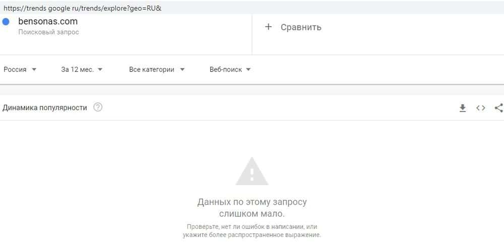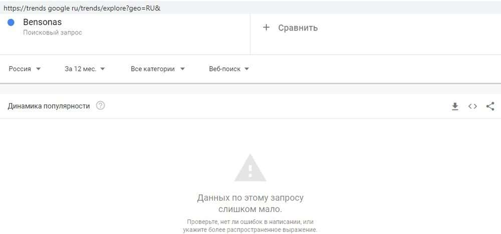 С запросом "Бенсонас" дела обстоят не лучше. Ни одного запроса. И это не удивительно - ведь Гугл Трендз собирает данные за год, а мошенникам Бенсонас всего-то несколько месяцев.