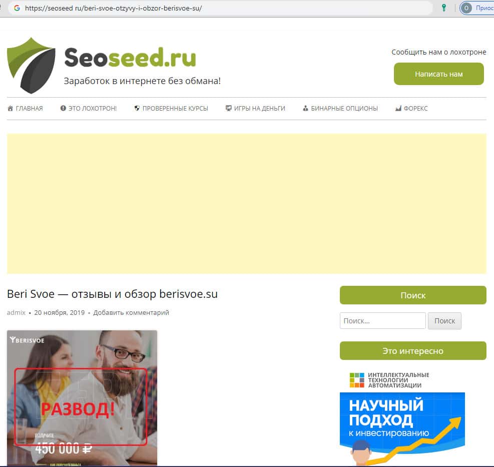 Вердикт портала seoseed ru: Berisvoe su - афера и обман