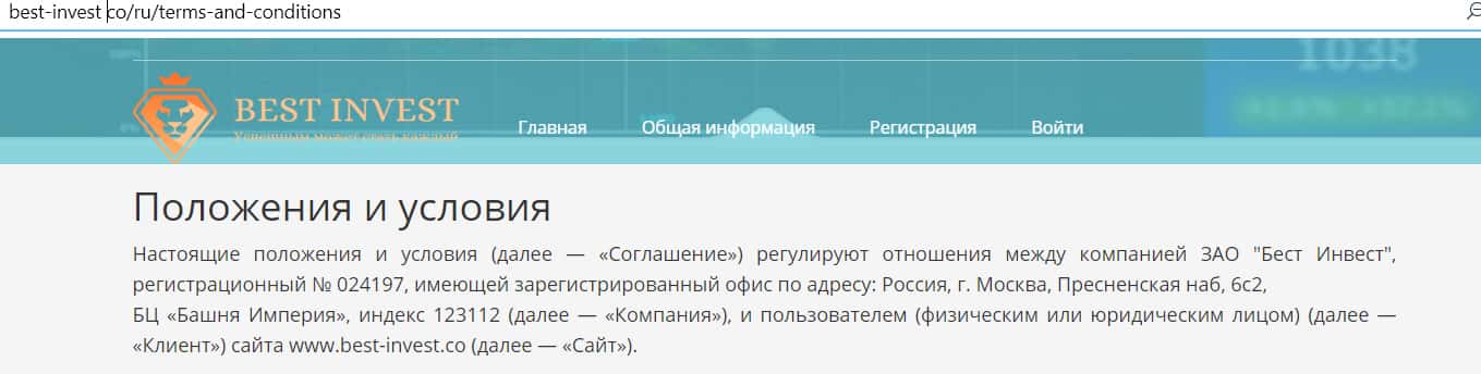 Создатели лоховского сайта Бест Инвест пишут, что находятся в Москве, в небоскребе Империя. Скорее всего, адрес фейковый, так как его заявляют очень многие лохотроны.