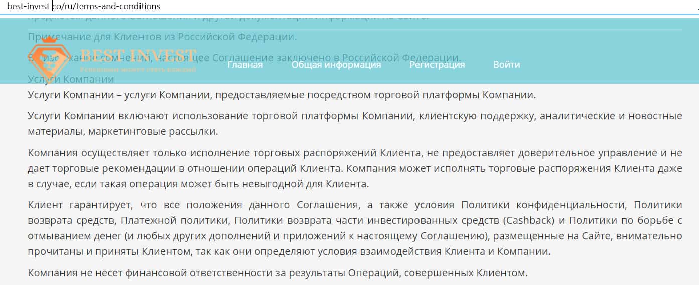 Клиентское соглашение брокерской компании Best-Invest Co