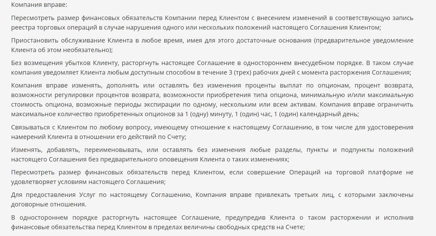 В разделе о правах компании Бест Инвест написано, что контора имеет право останавливать обслуживание, расторгать договор, делать все, что угодно по своему желанию.