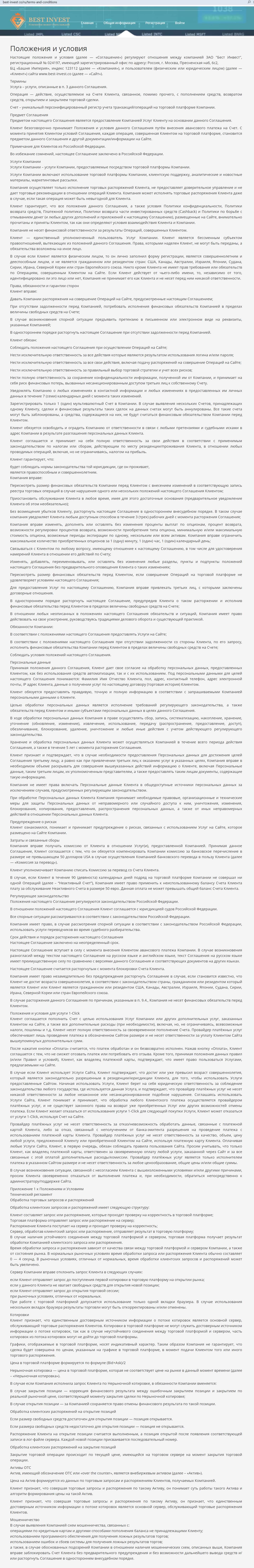 - Клиентское соглашение брокерской компании Best-Invest Co