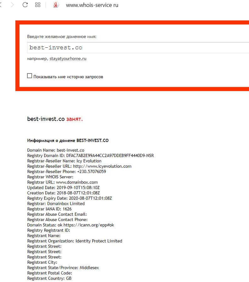 - Кому принадлежит доменное имя сайта Best-Invest Co?