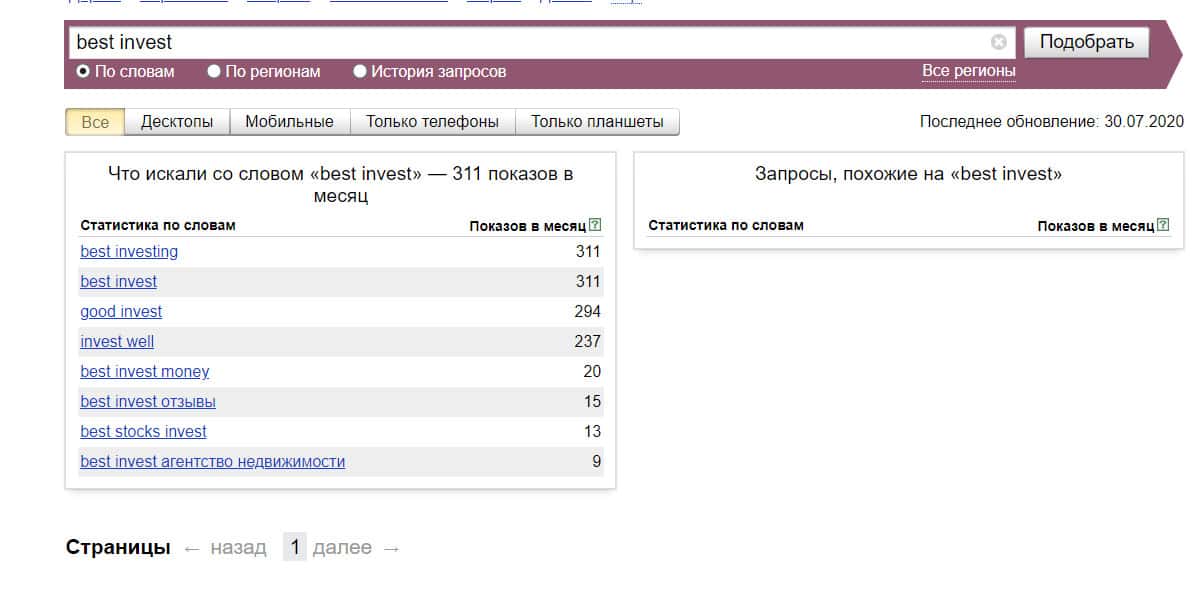 То же название "best invest", но написанное с пробелом, люди пытались найти в системе Яндекс всего 311 раз.