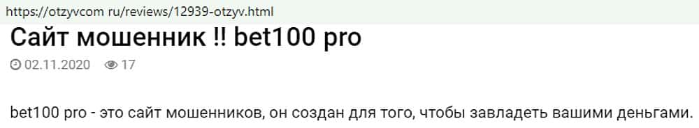 - Комментарии и отзывы о злодейском букмекере Bet100 Pro