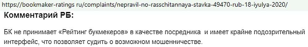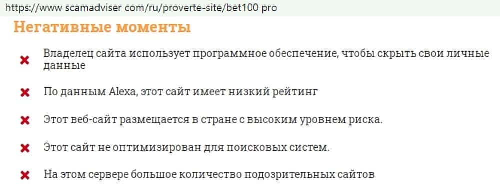 Признаки неблагонадежности интернет-разводилова Бет 100