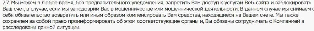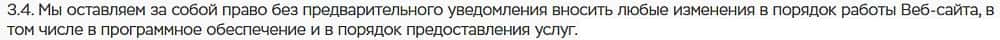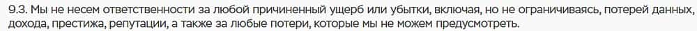 Еще в одном пункте клиентского недосоглашения наперсточников Bet100 Pro, имеется отмашка от ответственности, в случае получения ущерба клиентом, причем завуалированная.