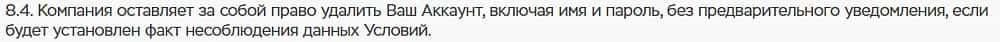 В один из дней аккаунт клиента сливного букмекера Бет 100 может просто оказаться удаленным, а все потому, что мошенники просто припишут какое либо условие к лжедоговору.