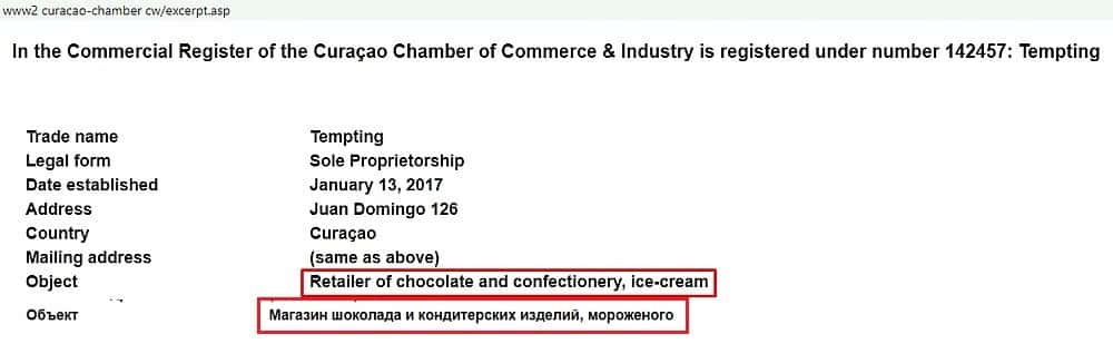 Да и сама организация Tempting, якобы получившая разрешение на игровую деятельность, к гэмблингу не имеет отношения. Это просто обыкновенная розничная кондитерская лавка.