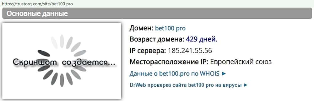 Анализ возраста доменного имени аферюг Бет 100 показал, что они нагло врут своим клиентам, утверждая, что работают с 2017 года. Домену жулья нет еще и двух лет от роду.