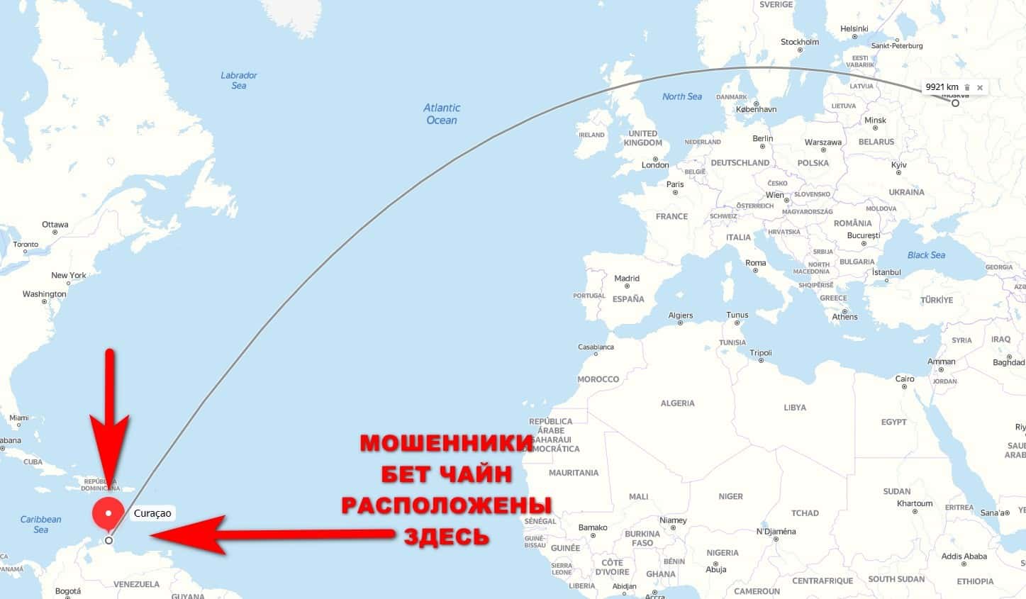 Шулерская контора Бет Чайн, как утверждает на своем сайте, разместила свою регистрацию на оффшорном острове Кюрасао, где их не достанут правоохранительные органы.