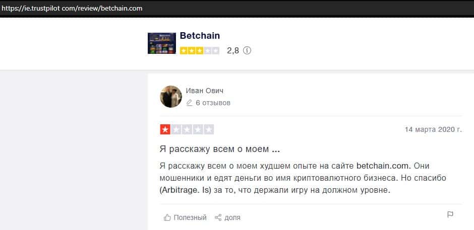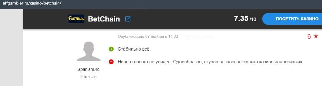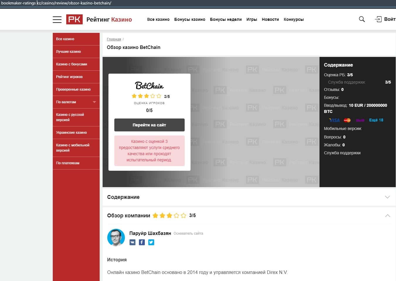Мошенническая контора BetChain попала в обзор одного ресурса, где указана на них средняя оценка, поэтому данное казино проходит испытательный срок.